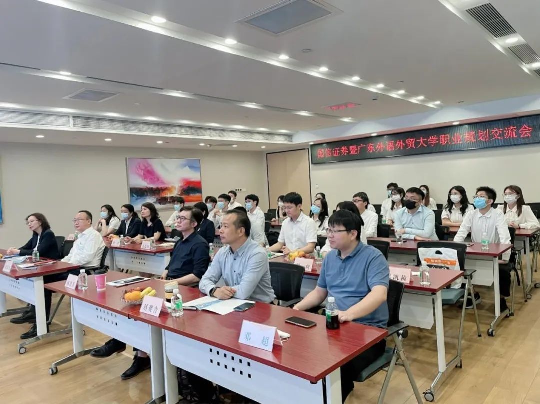 5月27日上午,太阳城“访企拓岗促就业”活动走进国信证券广州分公司,经过充分交流,最终有18位毕业生获得直通面试机会。公司党委副书记赵观音、副经理杨菁菁、经理助理邓超、金融系主任许振国、投资与理财系党支部书记周利、研究生工作办公室副主任刘浩、本科毕业班辅导员吴凯茜等师生20余人参加活动。国信证券广州分公司副总经理周景伟、鲁贝妮和陈鸿鹰,以及人力副总范艺琼、业务运营副总周锋等公司领导热情接待了公司师生。