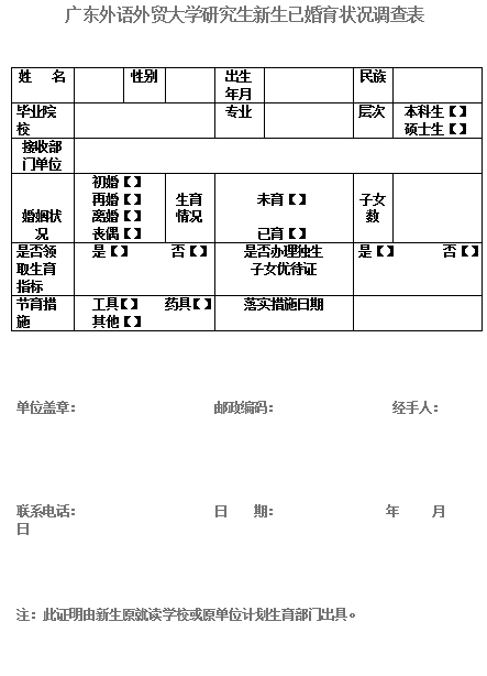 太阳城娱乐城研究生新生已婚育状况调查表.docx